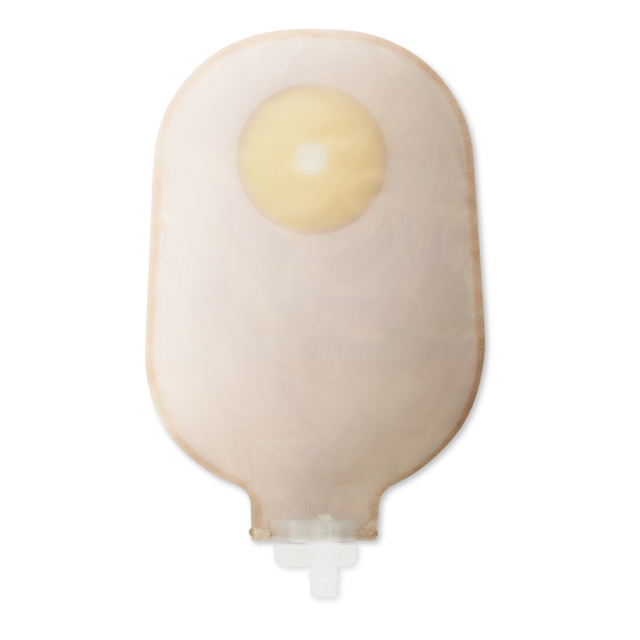 Flerkammarpåse med plan hudskyddsplatta och antirefluxventiler som förhindrar tillbakaflöde av urin. Töms via tappningskran med steglös reglering av flödet.