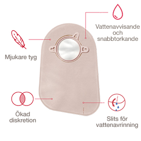 fuktgivande formula med ceramid för att bibehålla frisk hud runt stomin och en högkvalitativ stomipåse i ett uppgraderat tyg som inte är genomskinligt för att värna om din diskretion.